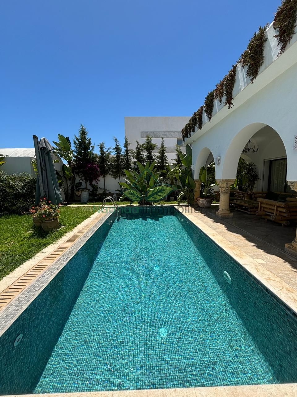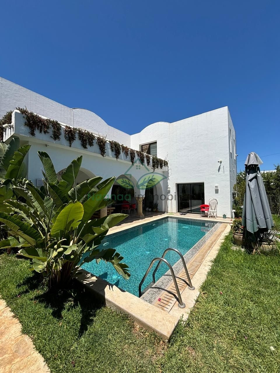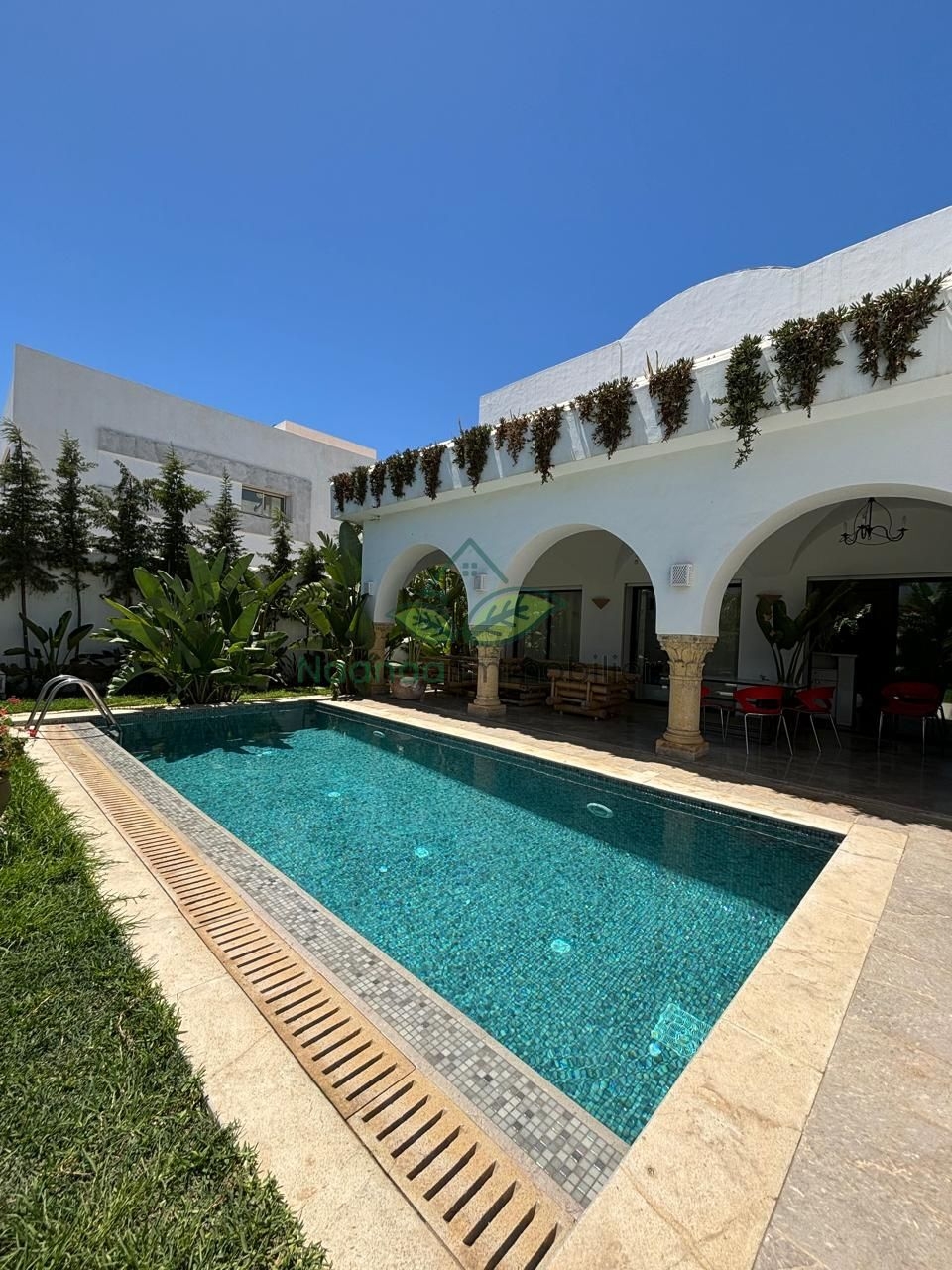 Notre agence "NaaNaa Immobilier" met en votre disposition Villa s+4 (4 suites) piscine , zone Touristique Miramar à 100m pas de la plage
