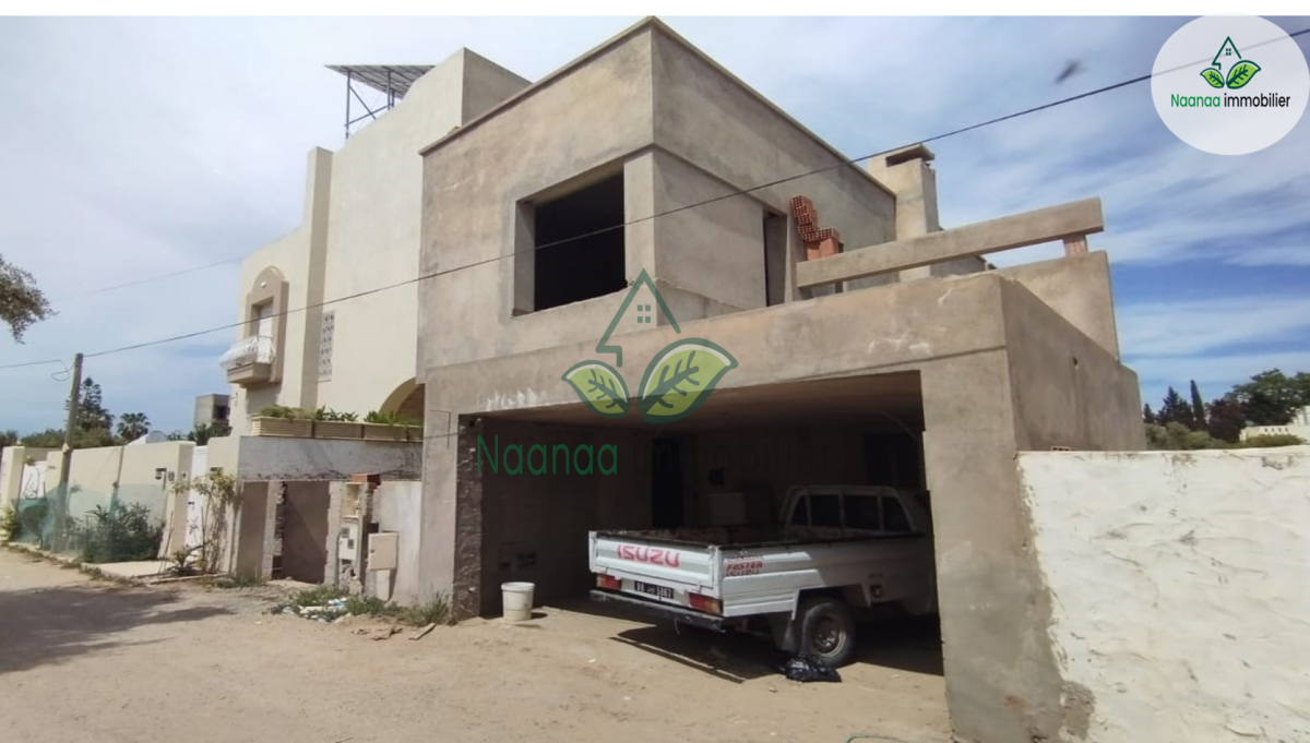 Villa Inachevée S+3 reste seulement 30% travaux avec Garage , compteur sonede et gaz électricité dispo , zone Hammamet sud à coté Hôtel phenicia à 100m de la plage