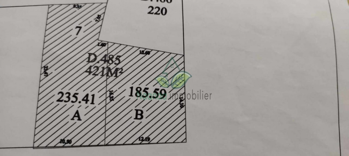 un lot de terrain a Hammamet rond point bareka sahel superficie de 235.41m et superficie de 185.59m totale 421m² prix: 650dt/m²